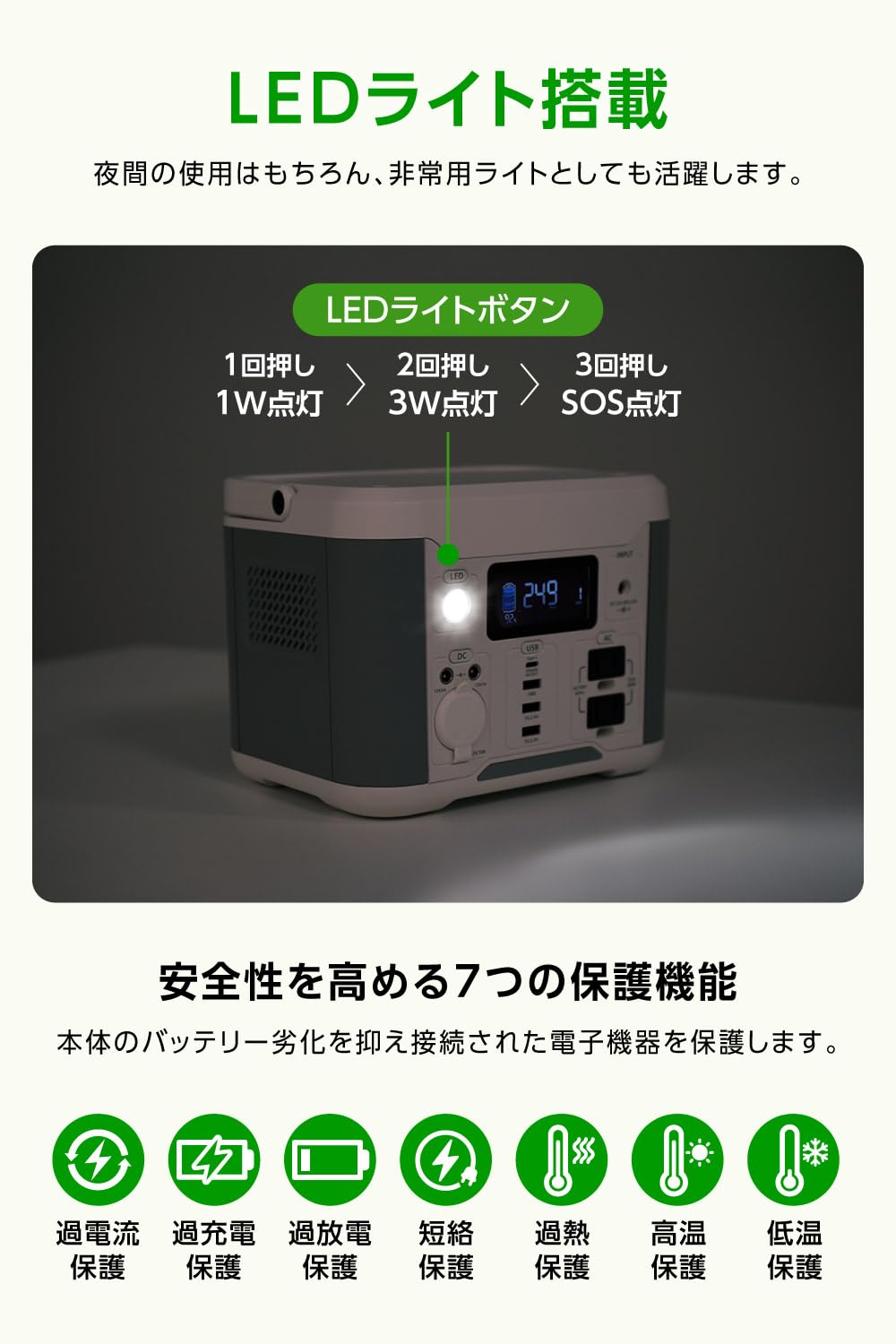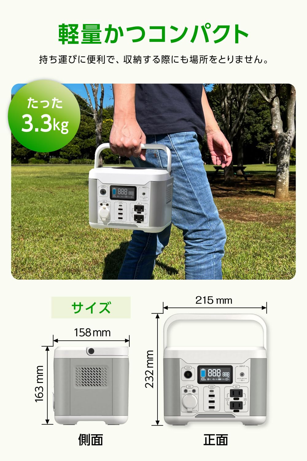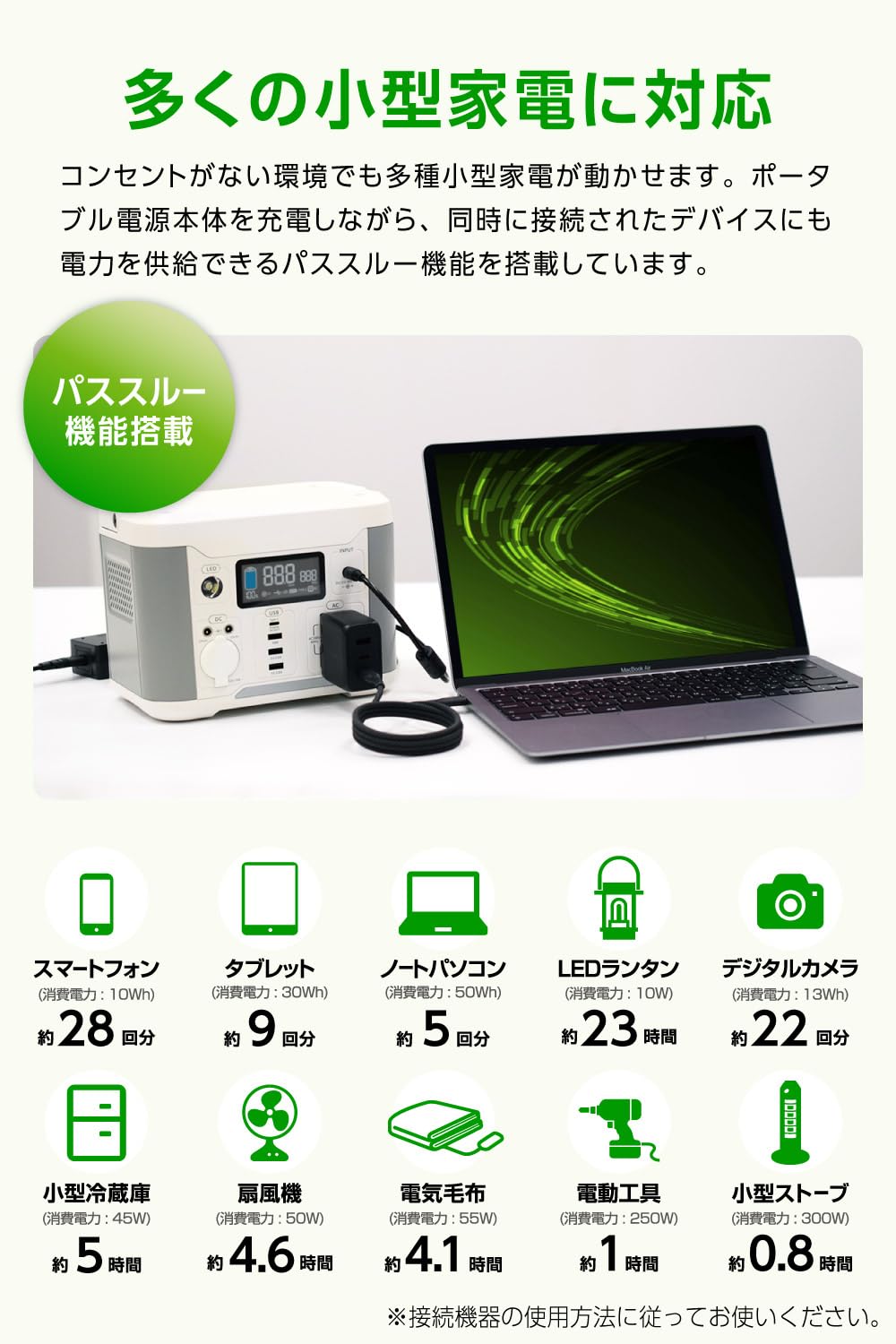 - 充電池タイプ:リチウムイオン充電池 (充電池容量:288Wh/80,000mAh 3.6V換算)