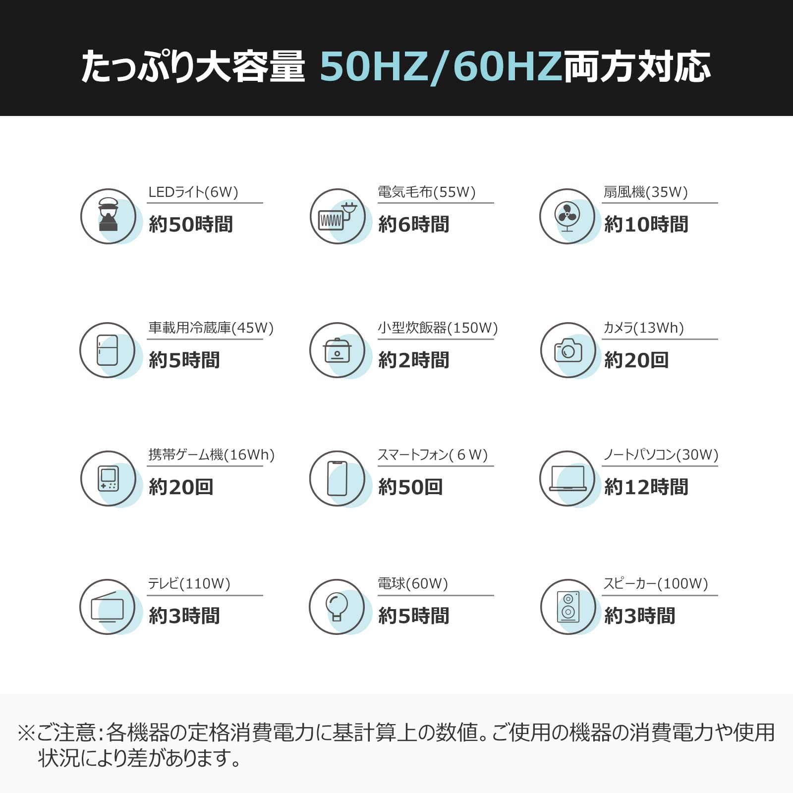 - 【様々なシーンで活躍】このポータブル電源は重さが約3.8kgの軽量コンパクトデザインを実現し、軽量コンパクトなボディーに十分なパワーを有している新開発大容量ポータブル電源です。車中泊、キャンプ、レジャーなどをはじめ、家庭用電源として大活躍!また、LED照明ライトがつきますので、地震や台風災害による停電時や緊急時の防災対策としての非常用電源としても活用ができます。