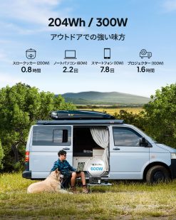 - 🔋【多様な出力ポート】 リン酸鉄リチウム電池と300Wインバーターを搭載した容量204WhのAC2Aは、重量わずか3.6kgで、AC出力ポート × 2、USB-A × 2、USB-C(100W)、シガーソケット出力を含む6つの出力ポートを備えています。