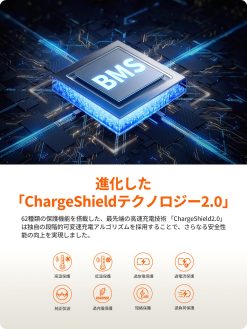 - 【進化したChargeShield2.0】62種類の保護機能を搭載した、先端の高速充電技術 「ChargeShieldテクノロジー2.0」 は、独自の段階的可変速充電アルゴリズムを採用することで、さらなる安 全性能の向上を実現しました。