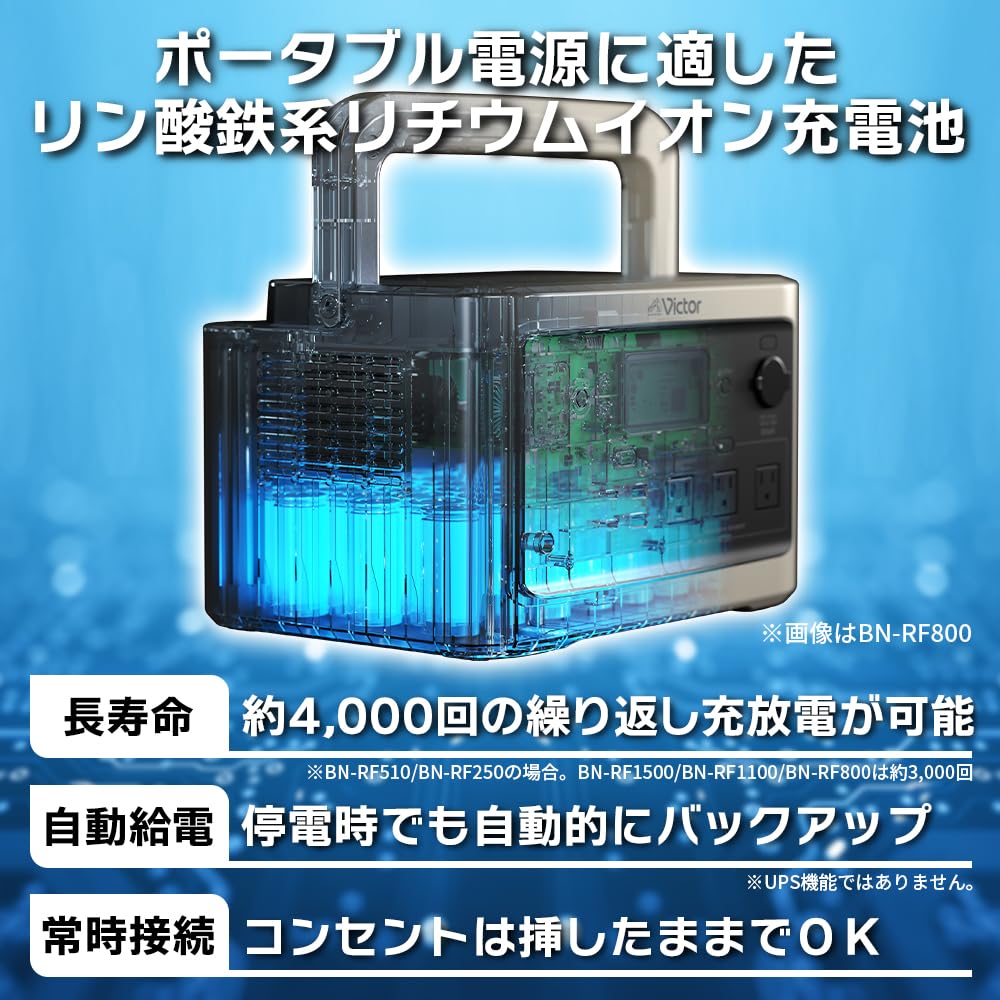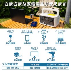 - 充電池タイプ:リチウムイオン充電池(リン酸鉄系) 充電池容量:80,000mAh/256Wh